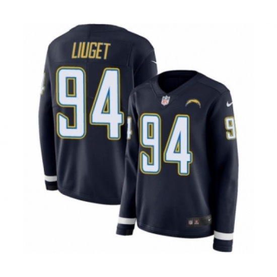 Women's Nike Los Angeles Chargers #94 Corey Liuget Limited Navy Blue Therma Long Sleeve NFL Jersey