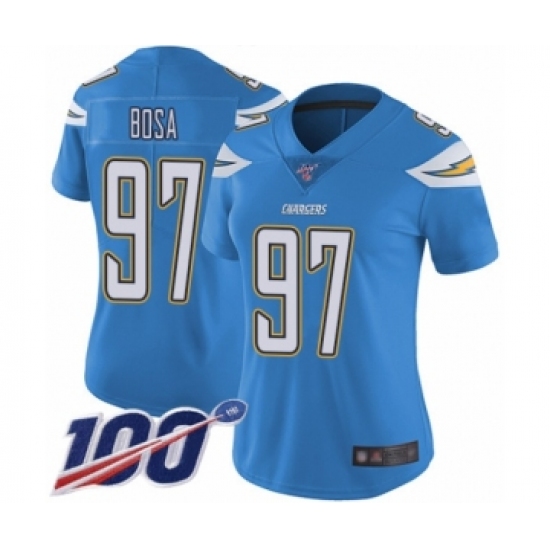 >Women's Nike Los Angeles Chargers #97 Joey Bosa Electric Blue Alternate Vapor Untouchable Limited Player 100th Season NFL Jersey