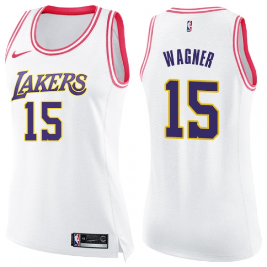 Women's Nike Los Angeles Lakers #15 Moritz Wagner Swingman White Pink Fashion NBA Jersey
