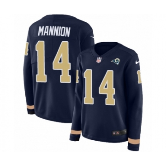 >Women's Nike Los Angeles Rams #14 Sean Mannion Limited Navy Blue Therma Long Sleeve NFL Jersey