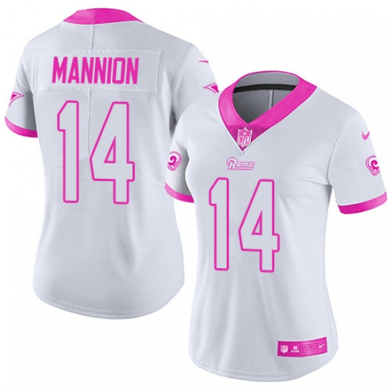 Home>NFL>Los Angeles Rams>Sean Mannion>Women's Nike Los Angeles Rams #14 Sean Mannion Limited White/Pink Rush Fashion NFL Jersey