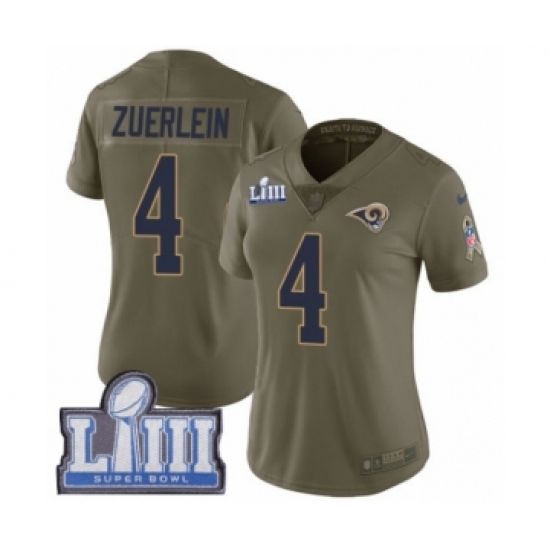 Women's Nike Los Angeles Rams #4 Greg Zuerlein Limited Olive 2017 Salute to Service Super Bowl LIII Bound NFL Jersey