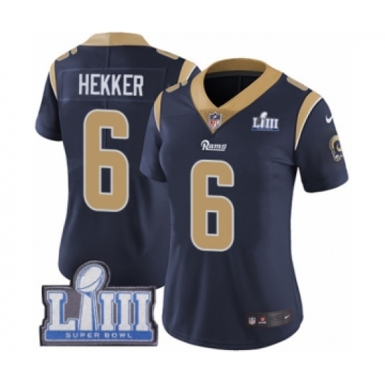 Women's Nike Los Angeles Rams #6 Johnny Hekker Navy Blue Team Color Vapor Untouchable Limited Player Super Bowl LIII Bound NFL Jersey