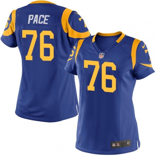 Women's Nike Los Angeles Rams #76 Orlando Pace Game Royal Blue Alternate NFL Jersey