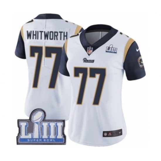 Women's Nike Los Angeles Rams #77 Andrew Whitworth White Vapor Untouchable Limited Player Super Bowl LIII Bound NFL Jersey