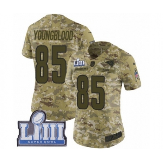 >Women's Nike Los Angeles Rams #85 Jack Youngblood Limited Camo 2018 Salute to Service Super Bowl LIII Bound NFL Jersey