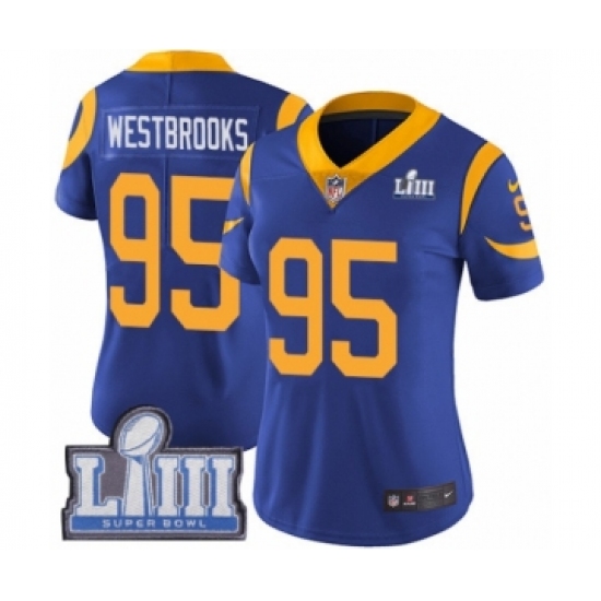 >Women's Nike Los Angeles Rams #95 Ethan Westbrooks Royal Blue Alternate Vapor Untouchable Limited Player Super Bowl LIII Bound NFL Jersey