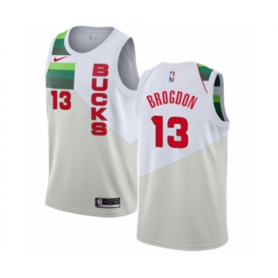 Men's Nike Milwaukee Bucks #13 Malcolm Brogdon White Swingman Jersey - Earned Edition