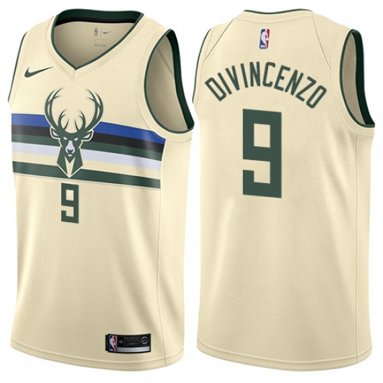 Youth Nike Milwaukee Bucks #9 Donte DiVincenzo Swingman Cream NBA Jersey - City Edition