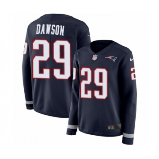 >Women's Nike New England Patriots #29 Duke Dawson Limited Navy Blue Therma Long Sleeve NFL Jersey