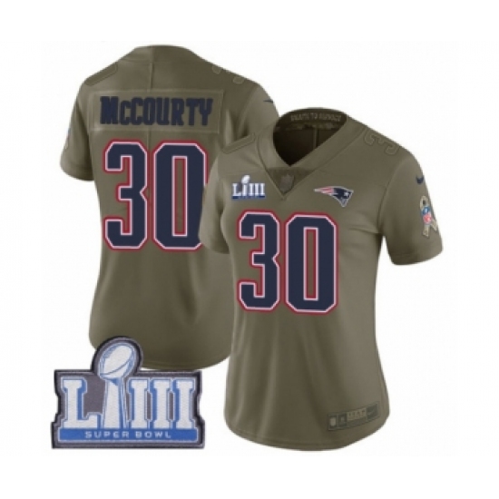 >Women's Nike New England Patriots #30 Jason McCourty Limited Olive 2017 Salute to Service Super Bowl LIII Bound NFL Jersey