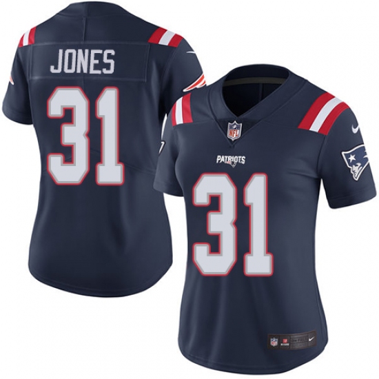 >Women's Nike New England Patriots #31 Jonathan Jones Limited Navy Blue Rush Vapor Untouchable NFL Jersey