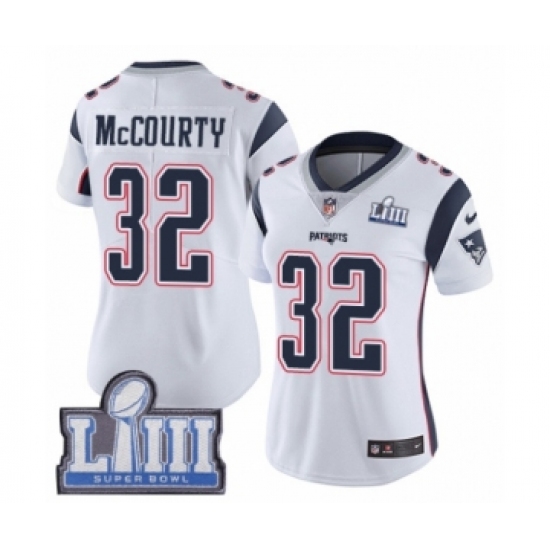 Women's Nike New England Patriots #32 Devin McCourty White Vapor Untouchable Limited Player Super Bowl LIII Bound NFL Jersey