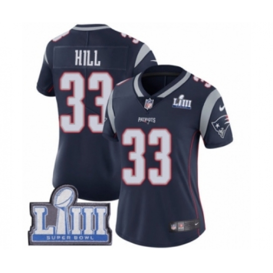 Women's Nike New England Patriots #33 Jeremy Hill Navy Blue Team Color Vapor Untouchable Limited Player Super Bowl LIII Bound NFL Jersey
