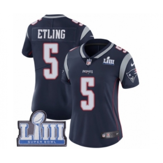 Women's Nike New England Patriots #5 Danny Etling Navy Blue Team Color Vapor Untouchable Limited Player Super Bowl LIII Bound NFL Jersey