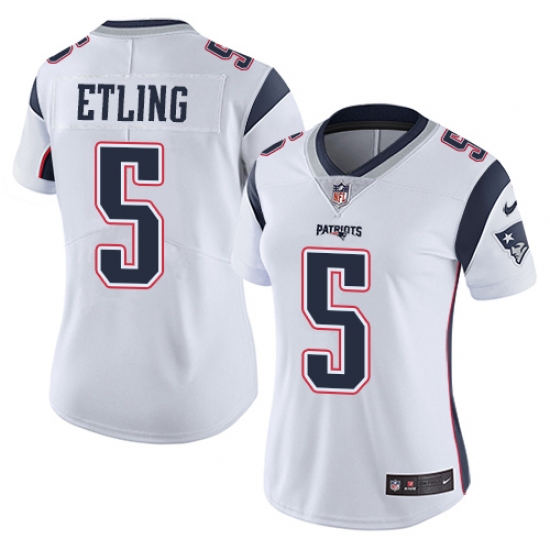 Women's Nike New England Patriots #5 Danny Etling White Vapor Untouchable Limited Player NFL Jersey