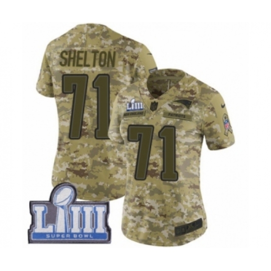 >Women's Nike New England Patriots #71 Danny Shelton Limited Camo 2018 Salute to Service Super Bowl LIII Bound NFL Jersey