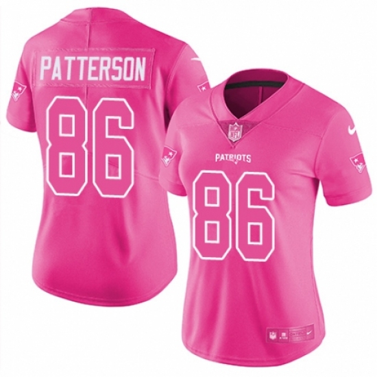 >Women's Nike New England Patriots #86 Cordarrelle Patterson Limited Pink Rush Fashion NFL Jersey