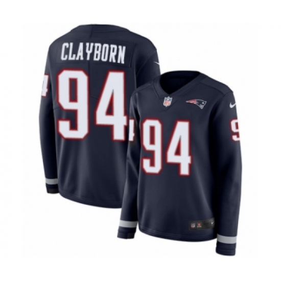 Women's Nike New England Patriots #94 Adrian Clayborn Limited Navy Blue Therma Long Sleeve NFL Jersey