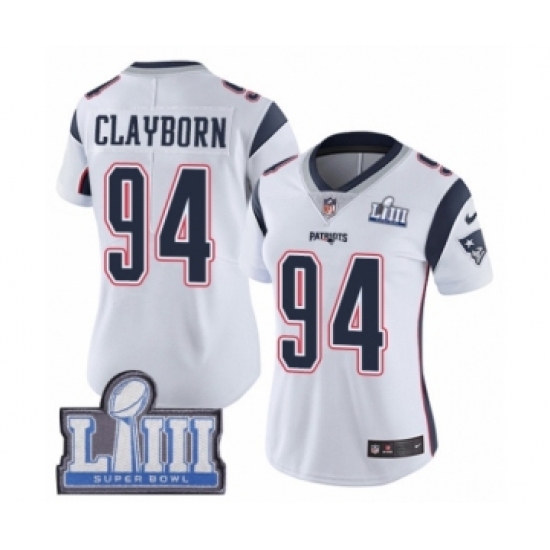 Women's Nike New England Patriots #94 Adrian Clayborn White Vapor Untouchable Limited Player Super Bowl LIII Bound NFL Jersey
