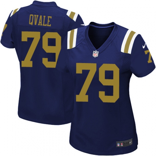 Women's Nike New York Jets #79 Brent Qvale Elite Navy Blue Alternate NFL Jersey