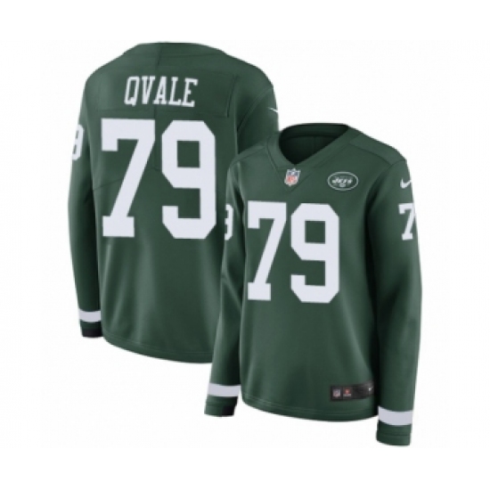 >Women's Nike New York Jets #79 Brent Qvale Limited Green Therma Long Sleeve NFL Jersey