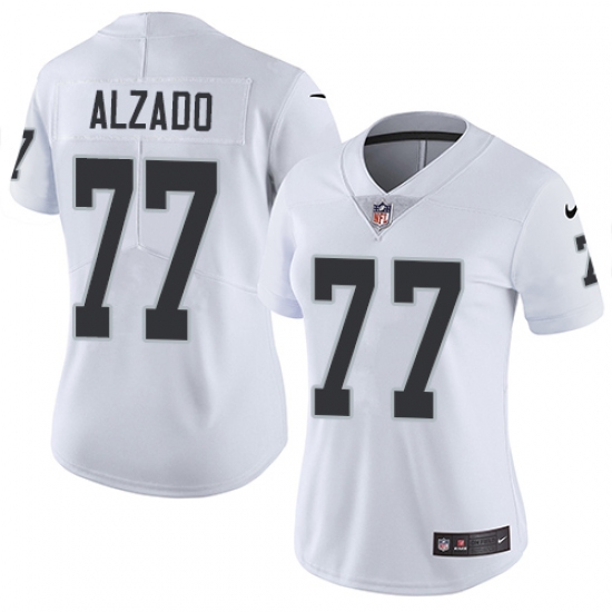 Home>NFL>Las Vegas Raiders>Lyle Alzado>Women's Nike Oakland Raiders #77 Lyle Alzado White Vapor Untouchable Limited Player NFL Jersey