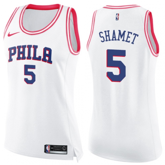 Women's Nike Philadelphia 76ers #5 Landry Shamet Swingman White Pink Fashion NBA Jersey