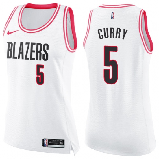 >Women's Nike Portland Trail Blazers #5 Seth Curry Swingman White Pink Fashion NBA Jersey