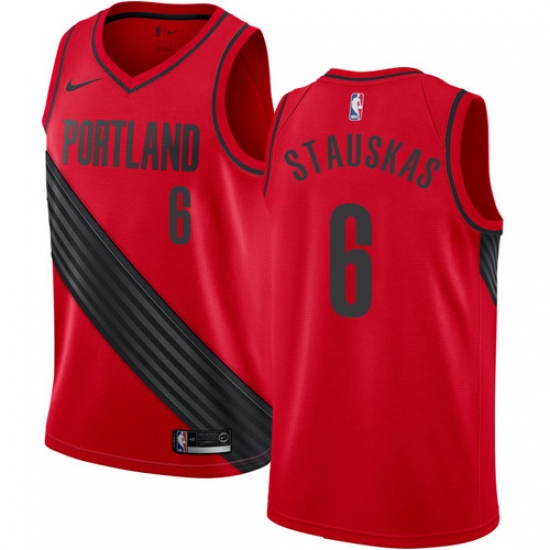 Men's Nike Portland Trail Blazers #6 Nik Stauskas Red Swingman Jersey - Earned Edition
