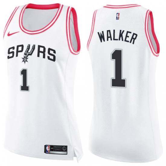 Women's Nike San Antonio Spurs #1 Lonnie Walker Swingman White Pink Fashion NBA Jersey