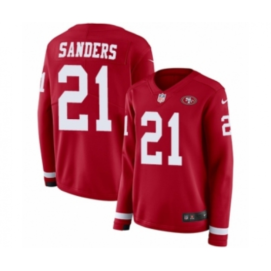 >Women's Nike San Francisco 49ers #21 Deion Sanders Limited Red Therma Long Sleeve NFL Jersey
