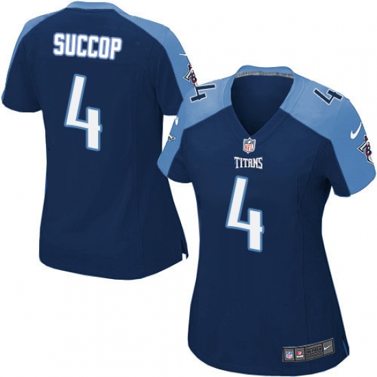 Home>NFL>Tennessee Titans>Ryan Succop>Women's Nike Tennessee Titans #4 Ryan Succop Game Navy Blue Alternate NFL Jersey