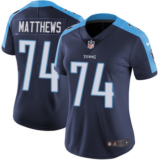Women's Nike Tennessee Titans #74 Bruce Matthews Navy Blue Alternate Vapor Untouchable Limited Player NFL Jersey