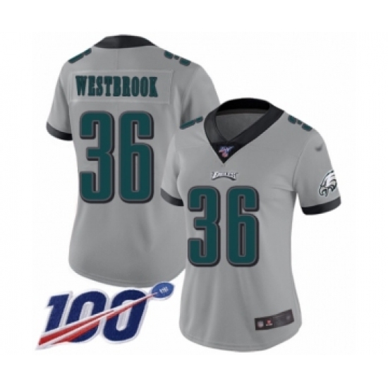 >Women's Philadelphia Eagles #36 Brian Westbrook Limited Silver Inverted Legend 100th Season Football Jersey