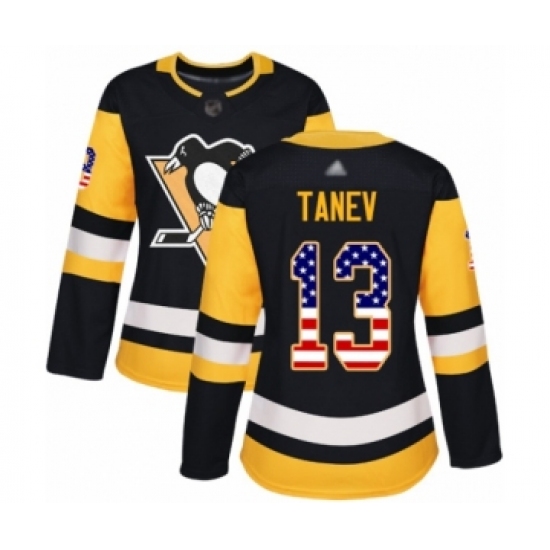 Women's Pittsburgh Penguins #13 Brandon Tanev Authentic Black USA Flag Fashion Hockey Jersey