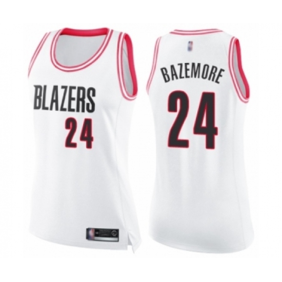 >Women's Portland Trail Blazers #24 Kent Bazemore Swingman White Pink Fashion Basketball Jersey