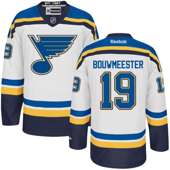 Home>NHL>St. Louis Blues>Jay Bouwmeester>Women's Reebok St. Louis Blues #19 Jay Bouwmeester Authentic White Away NHL Jersey