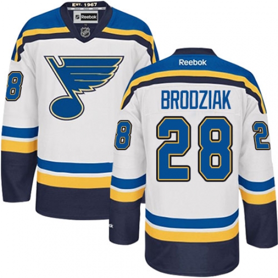 Home>NHL>St. Louis Blues>Kyle Brodziak>Women's Reebok St. Louis Blues #28 Kyle Brodziak Authentic White Away NHL Jersey