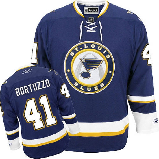 Home>NHL>St. Louis Blues>Robert Bortuzzo>Women's Reebok St. Louis Blues #41 Robert Bortuzzo Premier Navy Blue Third NHL Jersey