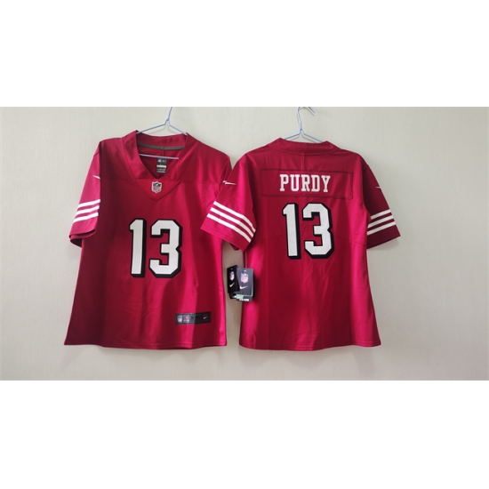 >Women's San Francisco 49ers #13 Brock Purdy Red Alternate Vapor Football Stitched Jersey(Run Small)