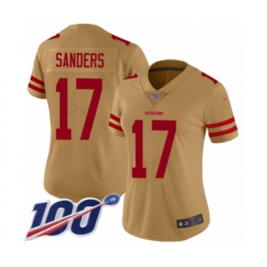 Women's San Francisco 49ers #17 Emmanuel Sanders Limited Gold Inverted Legend 100th Season Football Jersey