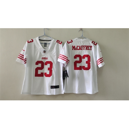 Women's San Francisco 49ers #23 Christian McCaffrey White Football Stitched Jersey(Run Small)
