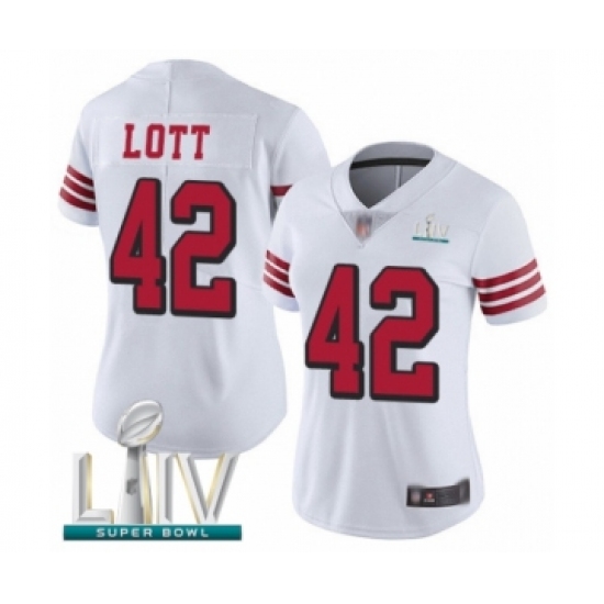 >Women's San Francisco 49ers #42 Ronnie Lott Limited White Rush Vapor Untouchable Super Bowl LIV Bound Football Jersey