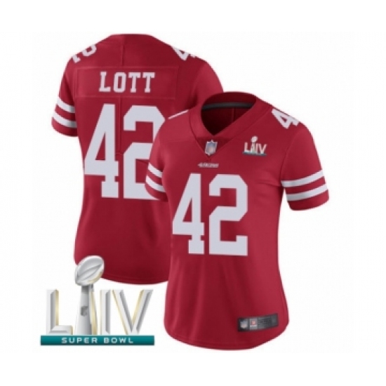 Women's San Francisco 49ers #42 Ronnie Lott Red Team Color Vapor Untouchable Limited Player Super Bowl LIV Bound Football Jersey