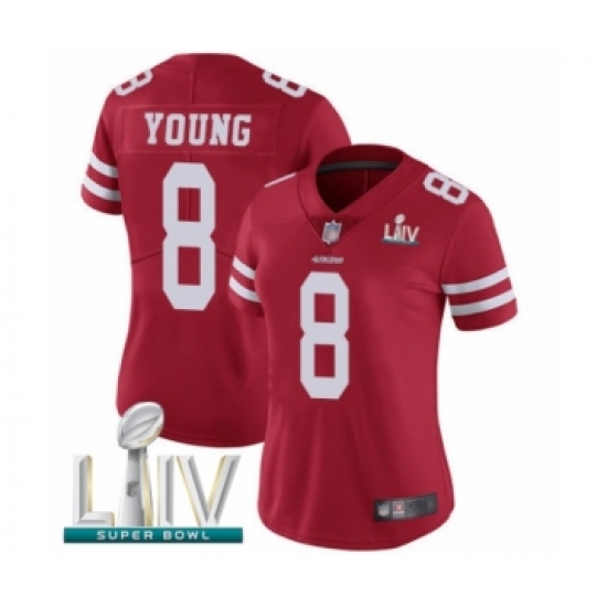 >Women's San Francisco 49ers #8 Steve Young Red Team Color Vapor Untouchable Limited Player Super Bowl LIV Bound Football Jersey