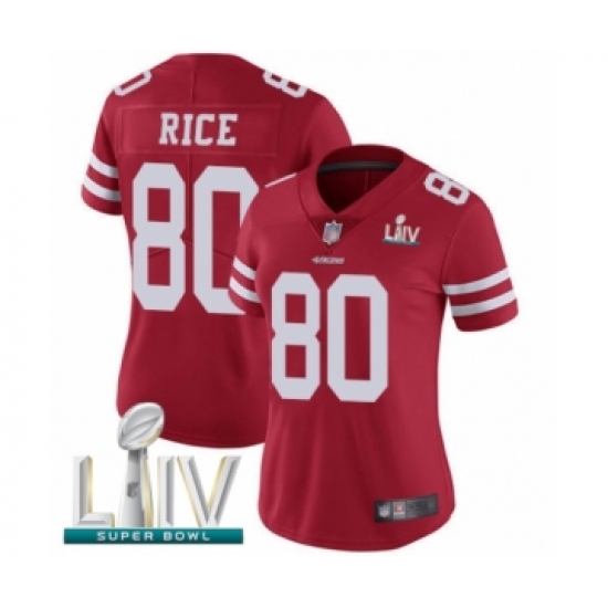 Women's San Francisco 49ers #80 Jerry Rice Red Team Color Vapor Untouchable Limited Player Super Bowl LIV Bound Football Jersey