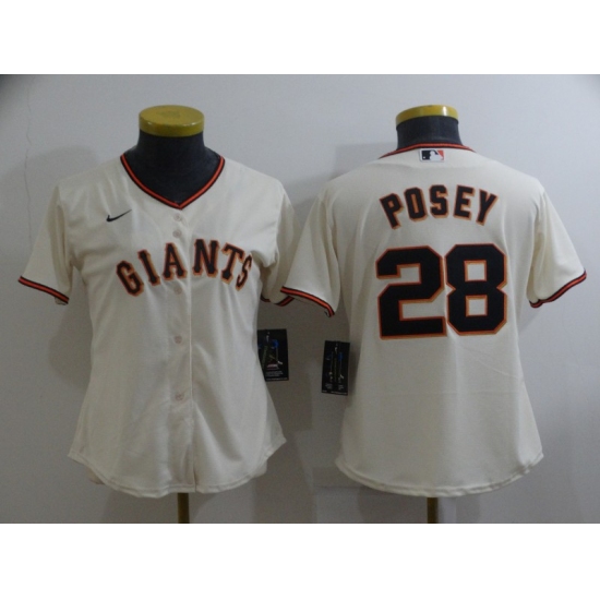 >Women's San Francisco Giants #28 Buster Posey Authentic Cream Home Jersey
