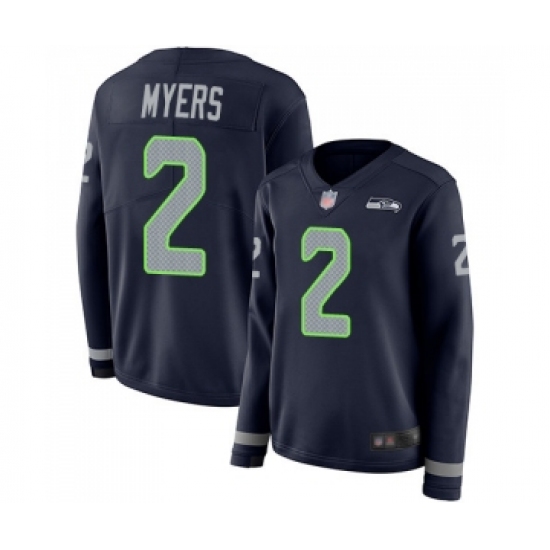 Women's Seattle Seahawks #2 Jason Myers Limited Navy Blue Therma Long Sleeve Football Jersey