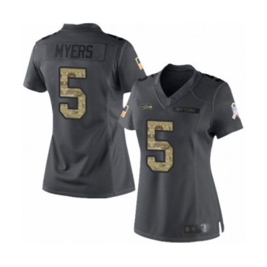 Women's Seattle Seahawks #5 Jason Myers Limited Black 2016 Salute to Service Football Jersey